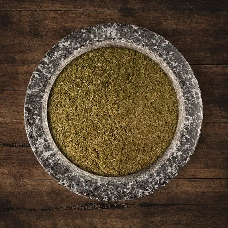 Zutaten: Meersalz, Sellerieblätter, Selleriesaat, Zwiebel, Pfeffer, Knoblauch.